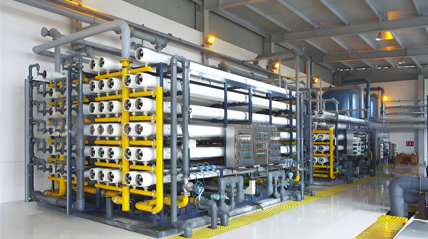 第三種:前處理與第二種方法一樣使用反滲透膜,區別在于后面使用的混床采用EDI連續除鹽膜塊代替,這樣就不需要酸堿再生樹脂,而是采用電再生模式。這就徹底使整個過程環保無污染,經過處理后的水質可達到15MΩ以上。該方法前期投入極大,但是整體的維護費用卻極低,適合有著長足發展的企業。
