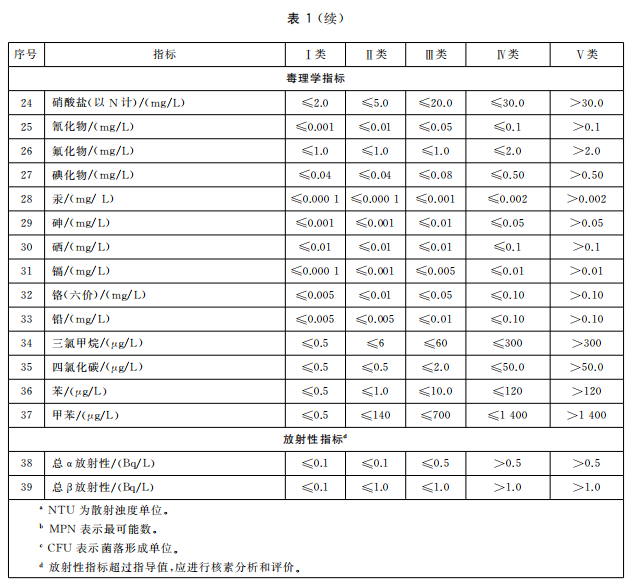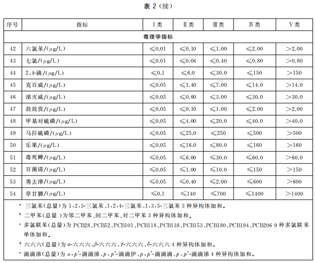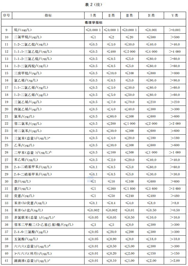 2.地下水質量分類指標