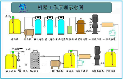Ⅲ級水通過高壓泵進入反滲透系統中在高壓泵的作用下,利用反滲透膜的半通透性,在一定程度上將水中各種金屬離子、細菌、病毒、殘留有機物、膠體等截留在膜外,通過濃水管道將這部分水排出,反滲透膜的去除率可達到99%。可以獲得Ⅱ級水。